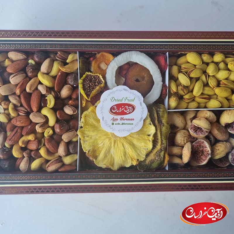 محتوای این جعبه همگی دستچین هستند و از باکیفیتترین میوه خشکها و آجیلها برای مهمانیهای شما گلچین شدهاند. پس با خیال راحت این محصول را تهیه و سلامت عزیزان خود را تضمین کنید.